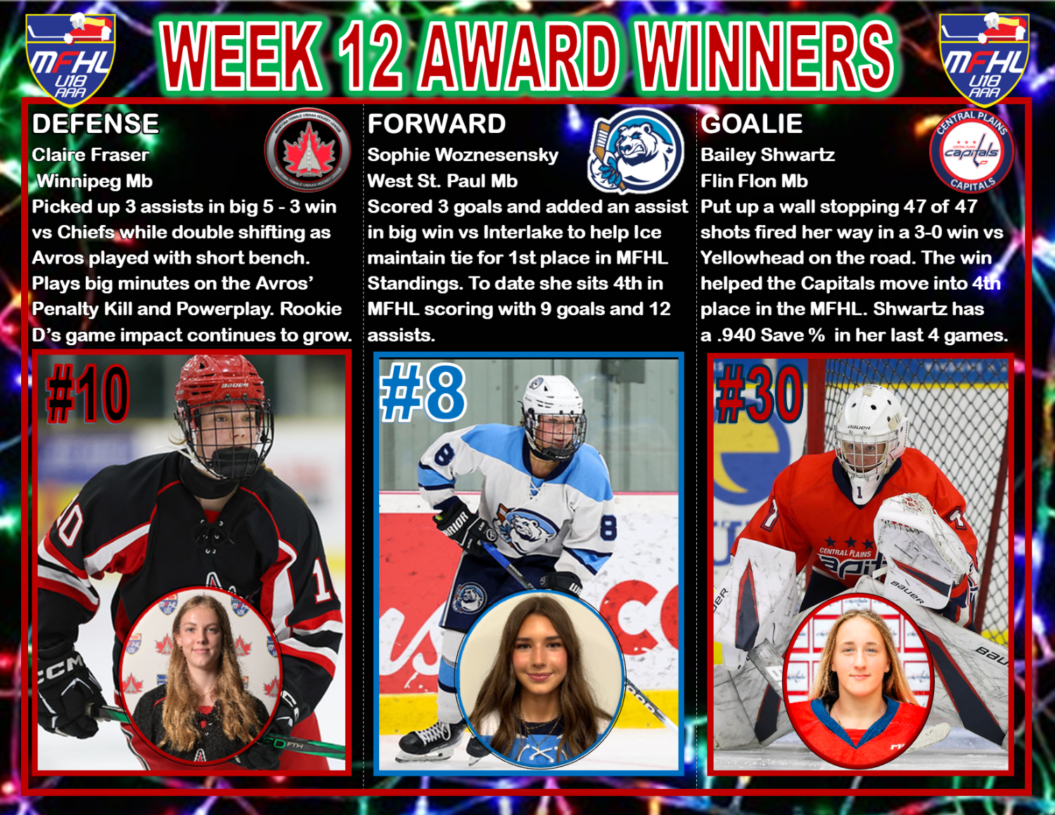 | 3:00 PM | Game_13_Final.pdf | Westman Wildcats | 4 | Central Plains Capitals | 2 |